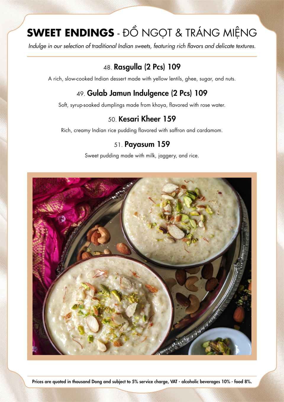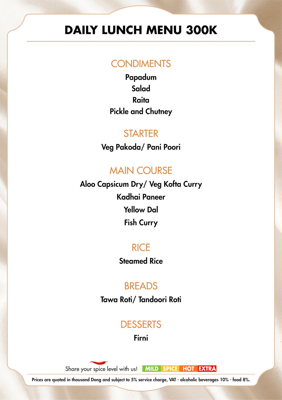 Benaras Sutra Menu