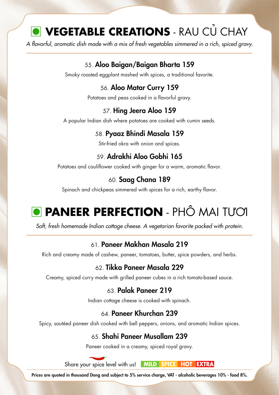Benaras Cu Chi Menu