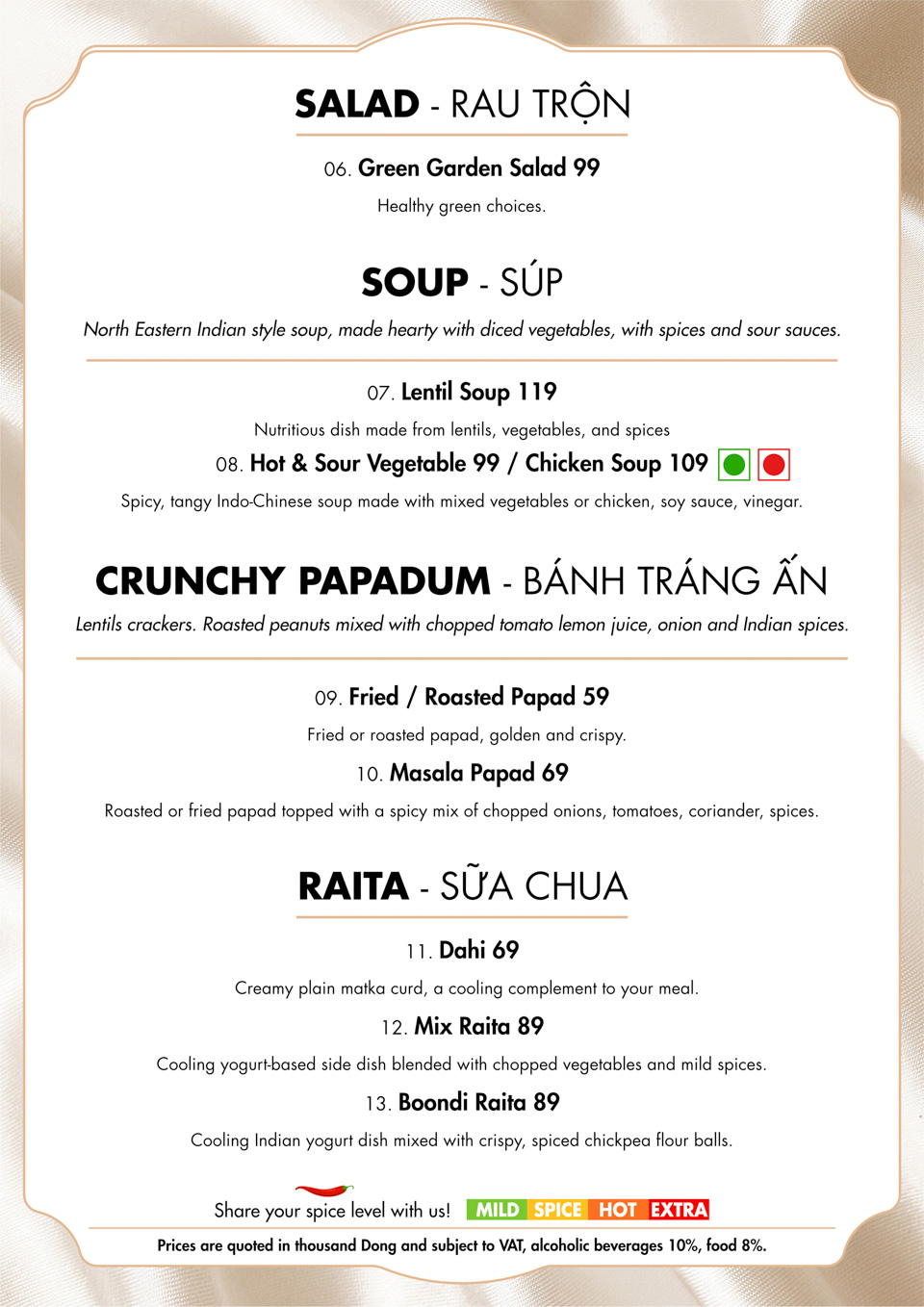 Benaras Sutra Menu