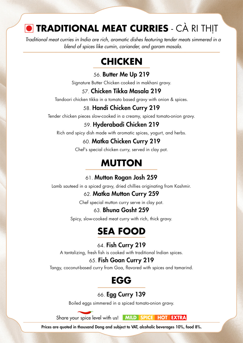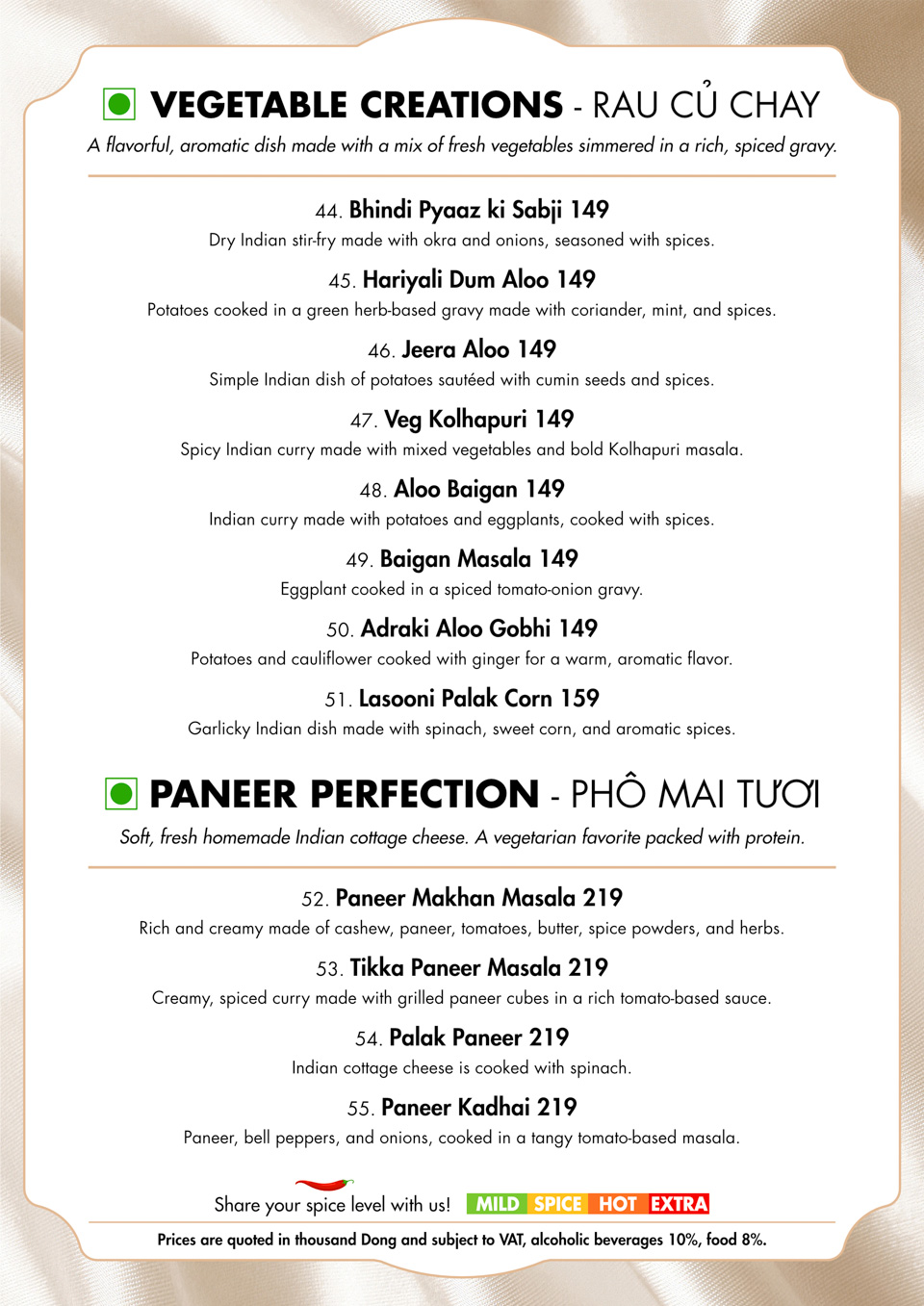 Benaras Cu Chi Menu